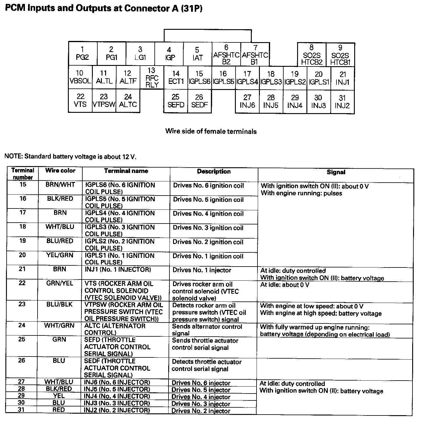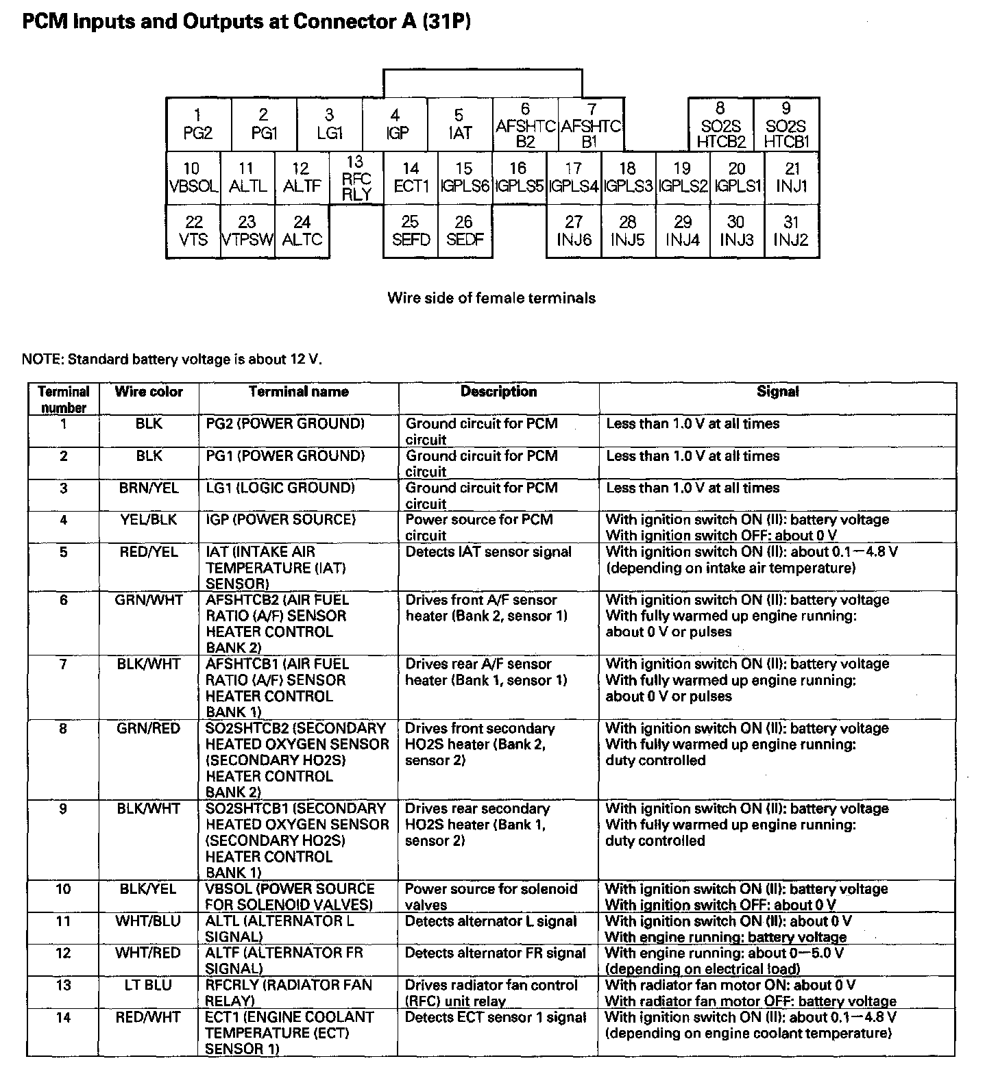 PCM Inputs And Outputs At Connector A (31P) Part 1: