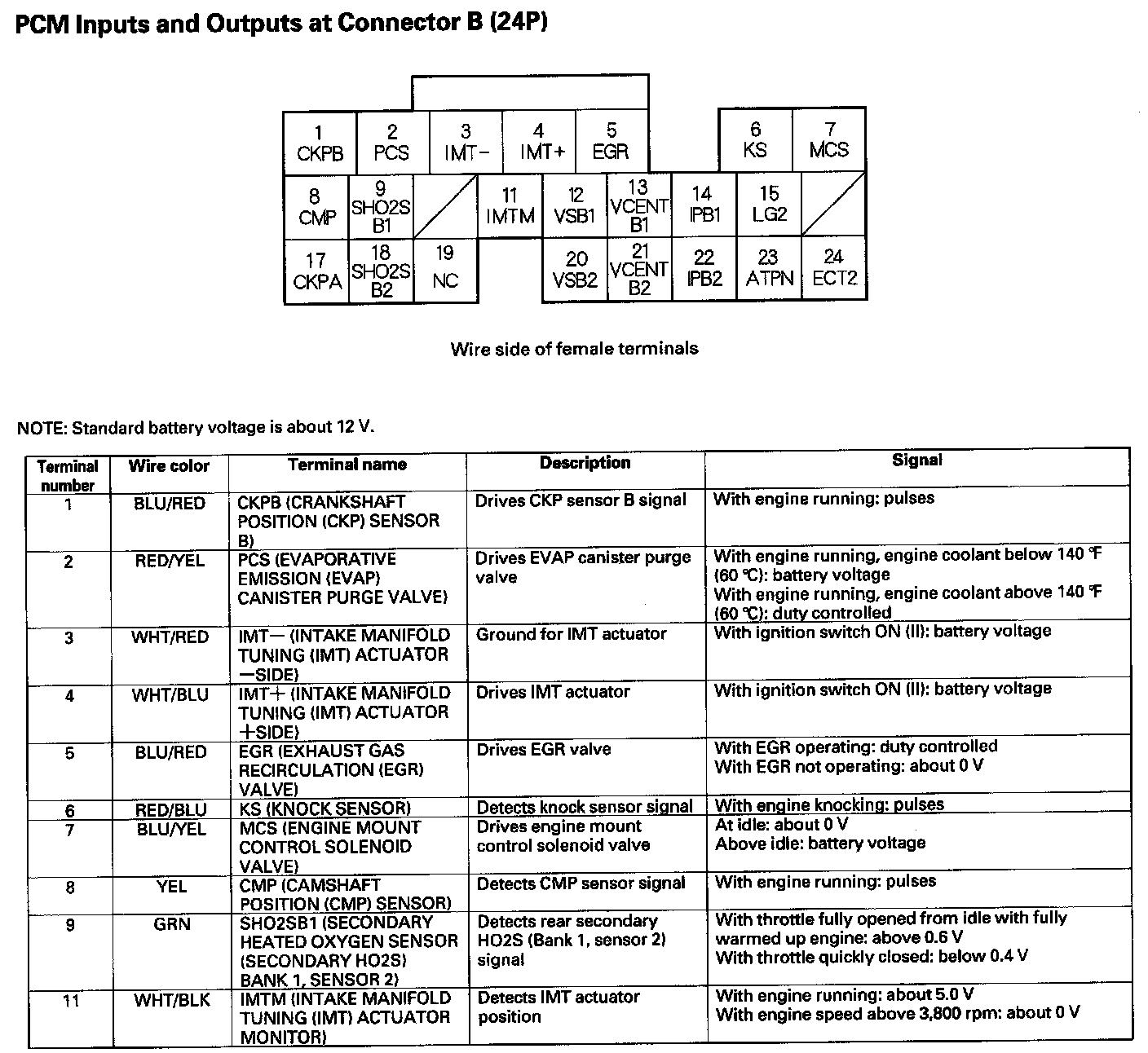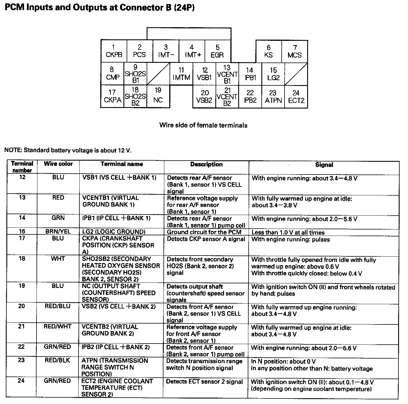 PCM Inputs And Outputs At Connector B (24P) Part 1: