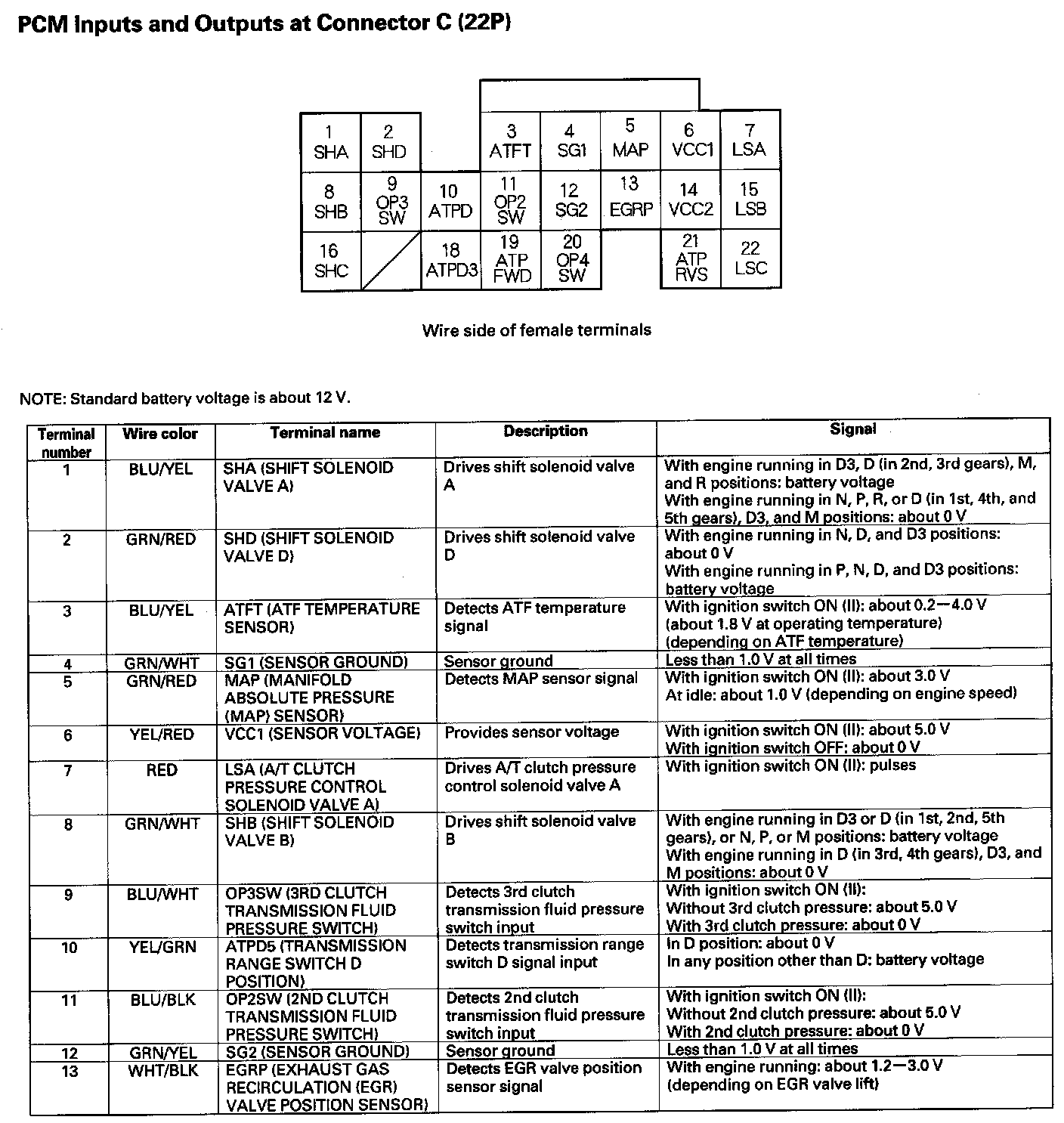 PCM Inputs And Outputs At Connector C (22P) Part 1: