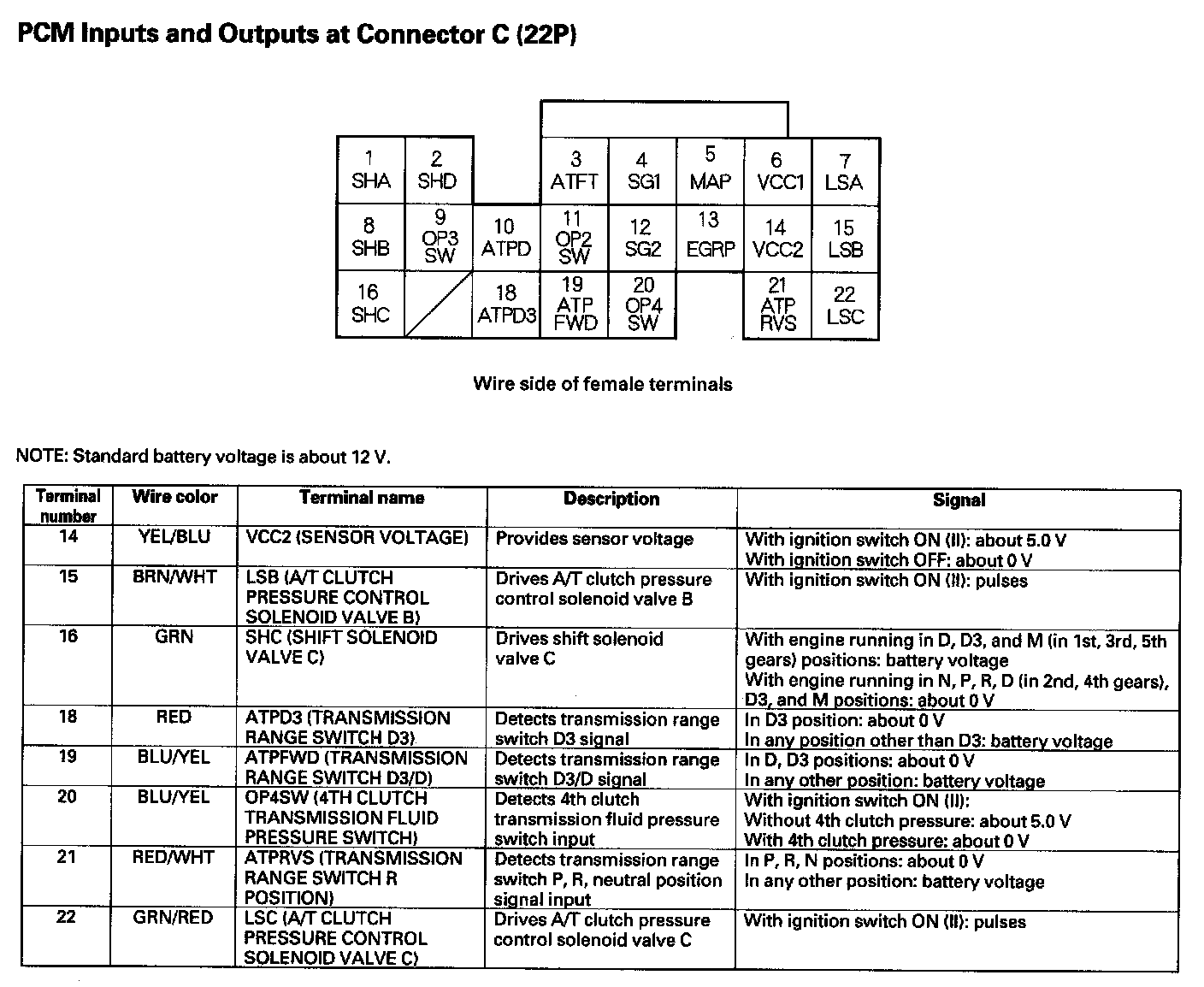 PCM Inputs And Outputs At Connector C (22P) Part 2: