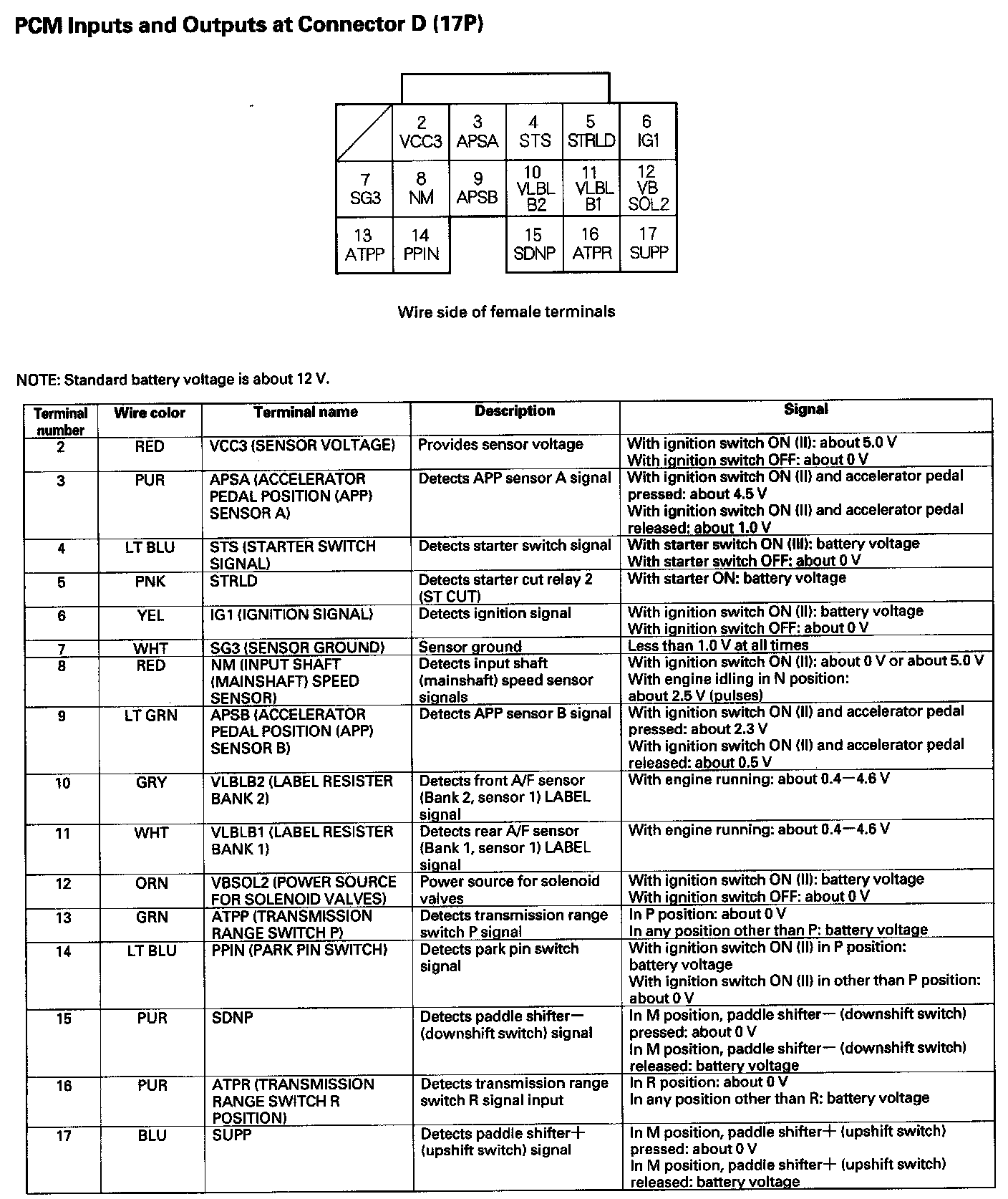 PCM Inputs And Outputs At Connector D (17P):