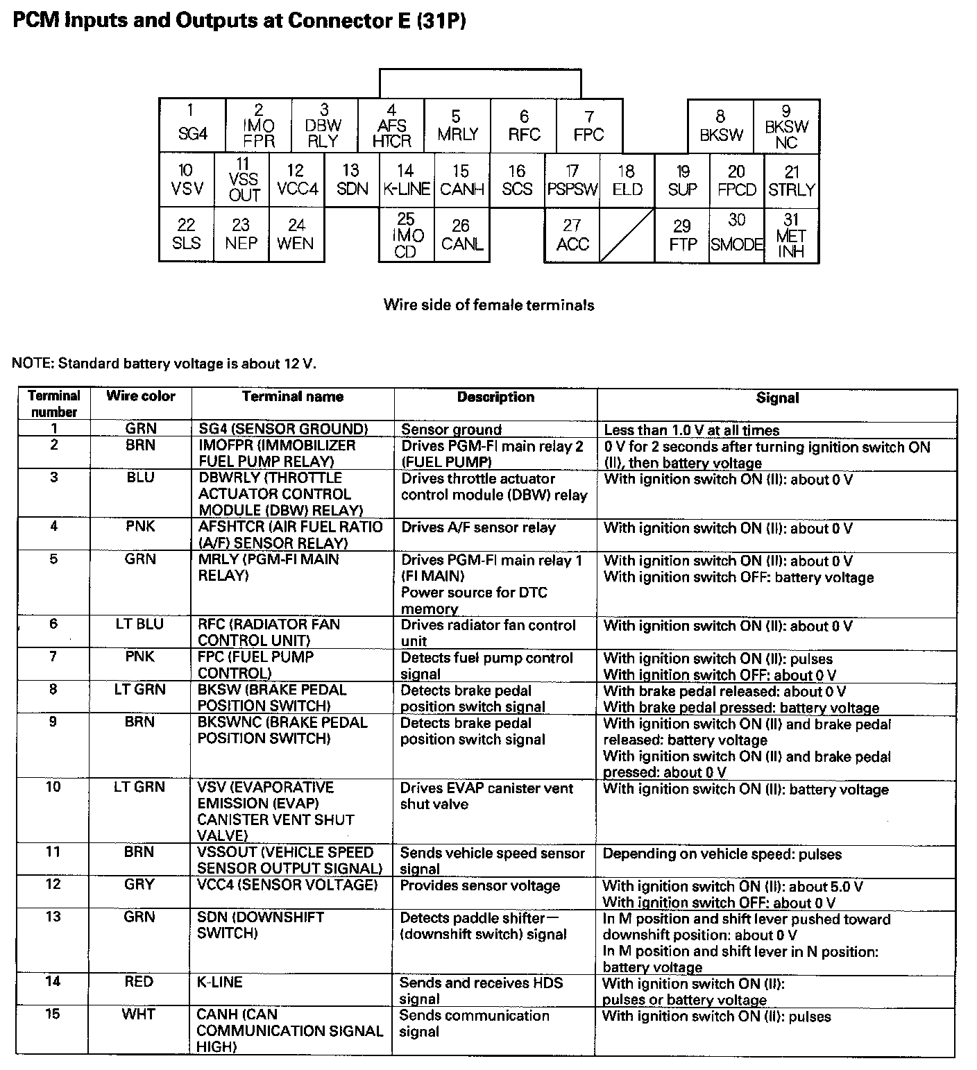 PCM Inputs And Outputs At Connector E (31P) Part 1: