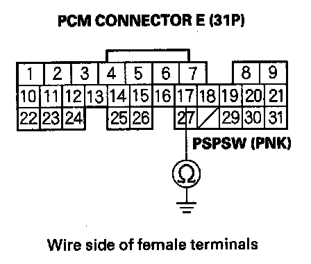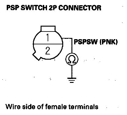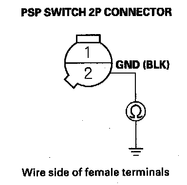 11. Check for continuity between PSP switch 2P connector terminal No. 1 and body ground.