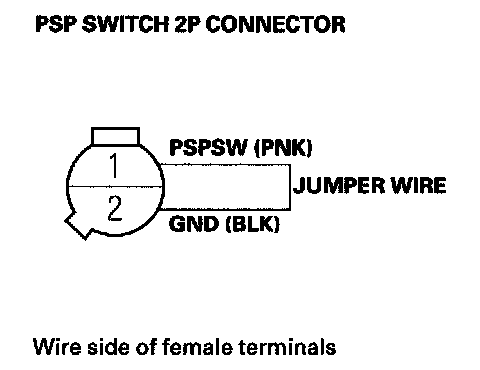 17. Remove the jumper wire from the PSP switch 2P connector.