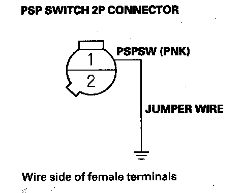 14. Connect PSP switch 2P connector terminals No. 1 and No. 2 with a jumper wire, then start the engine.