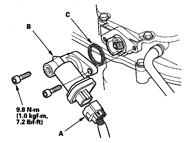 4. Install the parts in the reverse order of removal with a new O-ring (C).