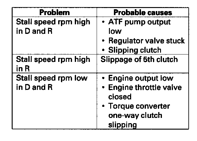 8. If any of the stall speeds are out of the service limit, refer to the problems and probable causes listed in the table.