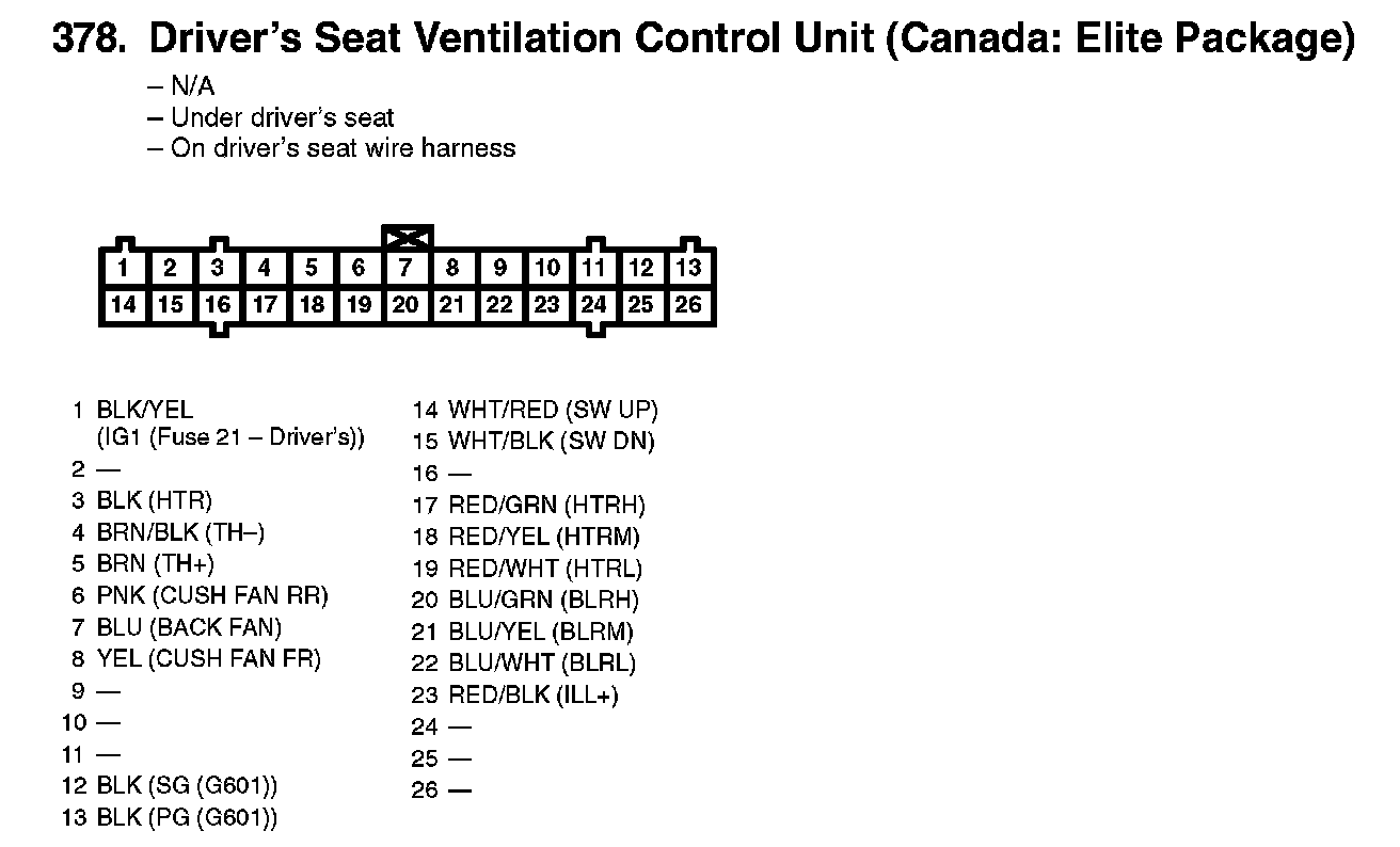 378. Driver's Seat Ventilation Control Unit (Canada: Elite Package):