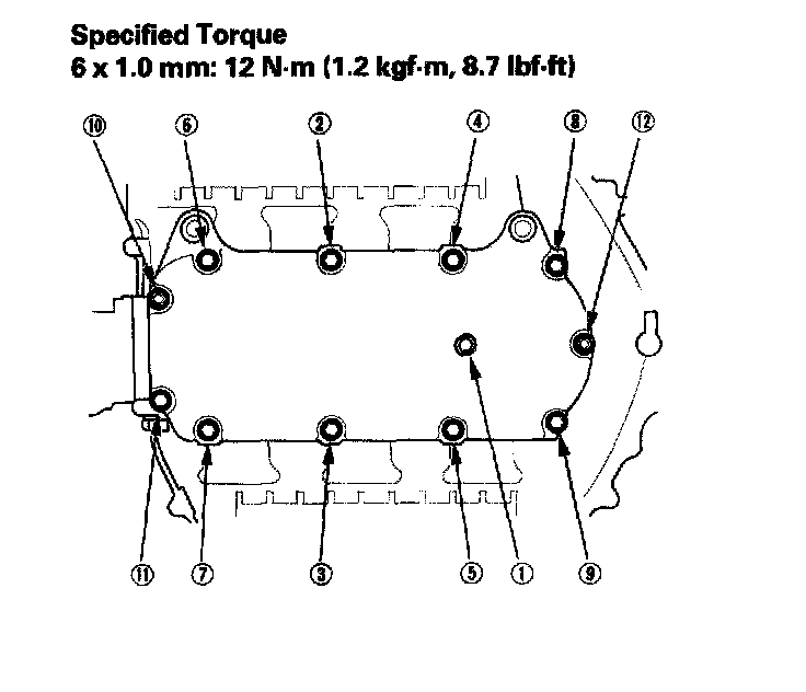 Install the upper cover. Tighten the bolts and nuts sequentially in two or three steps. Always use a new gasket.