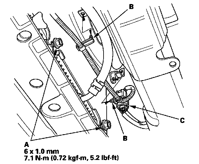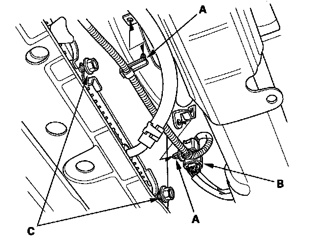 3. Install the bolt (C) securing the harness holder.