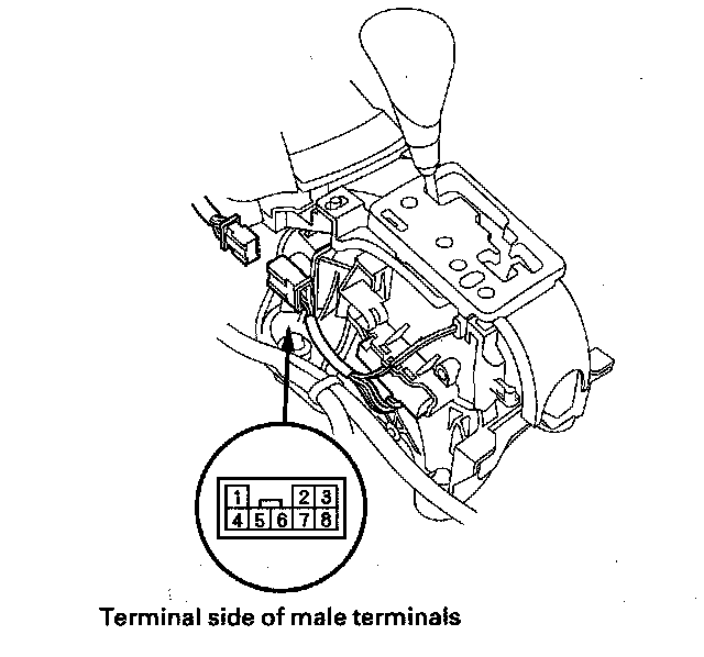 4. Shift out of P, and check for continuity between the terminals No. 1 and No. 4. There should be continuity.