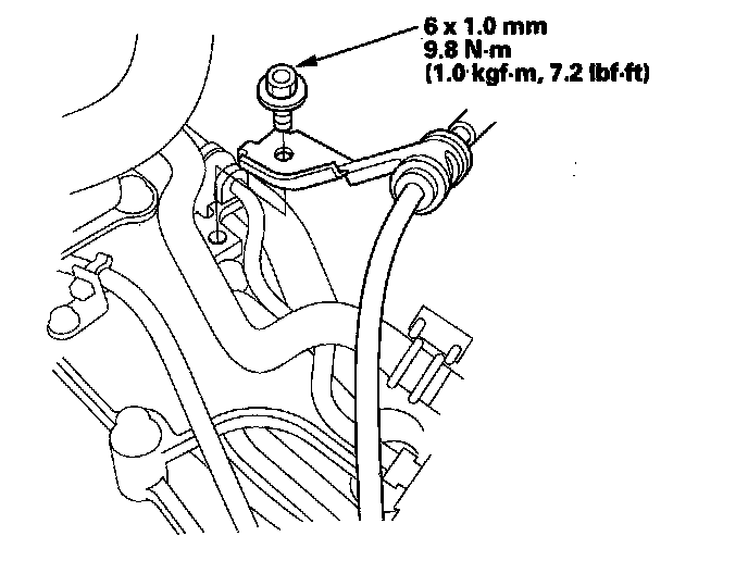 17. Insert the new shift cable through the grommet hole, and install the grommet in its hole. Do not bend the shift cable excessively.