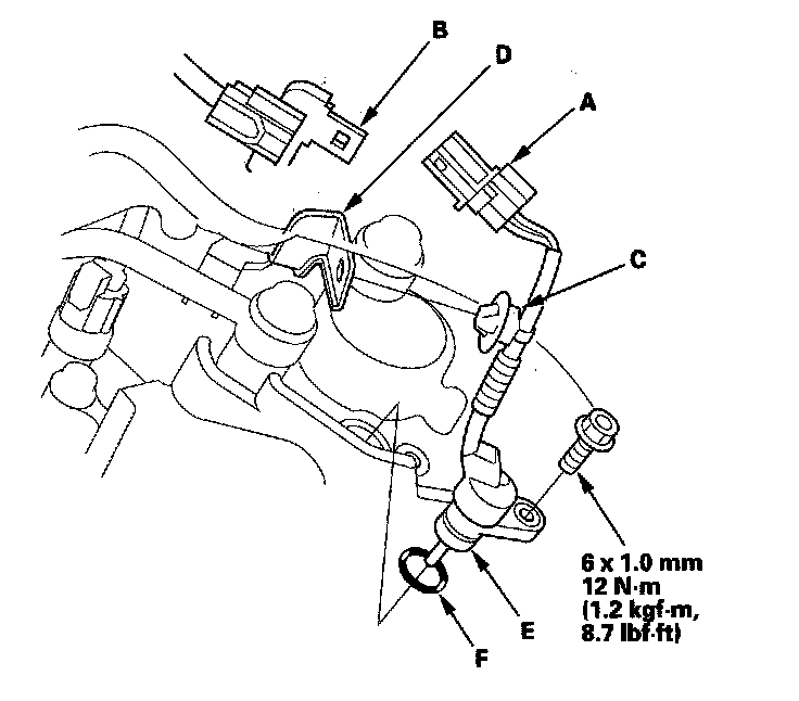 8. Install the new O-ring (F) on the new ATF temperature sensor, and install the ATF temperature sensor.