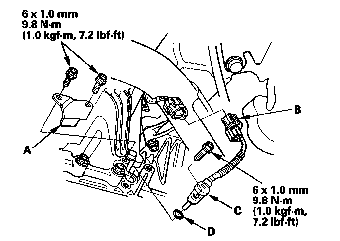 4. Install the differential fluid temperature sensor with a new O-ring (D) in the reverse order of removal.