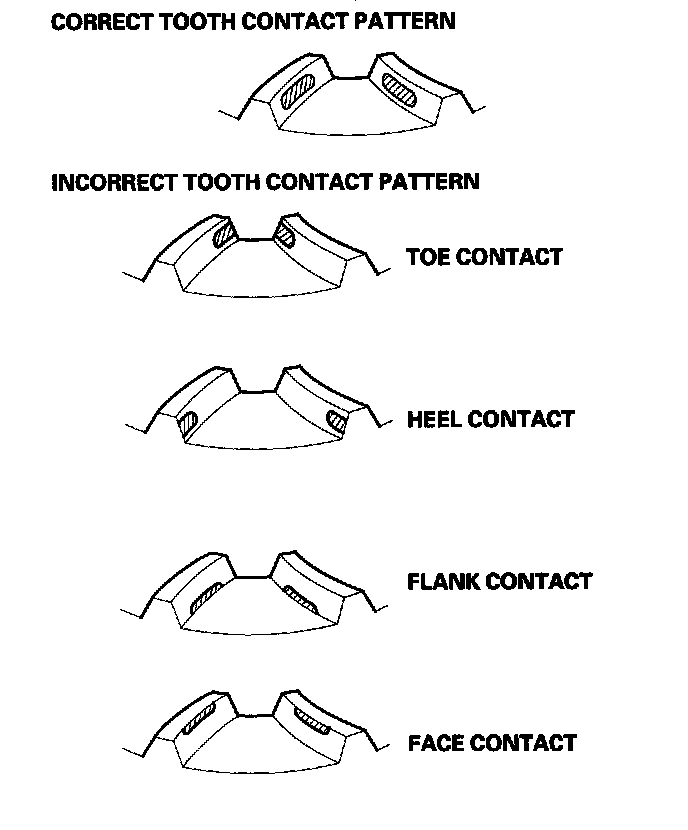 Face contact must be adjusted within the limits of the transfer gear backlash. If the backlash exceeds the limits, adjust as described under Toe Contact.