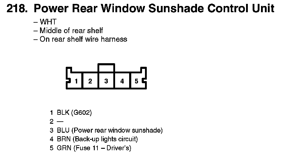 218. Power Rear Window Sunshade Control Unit: