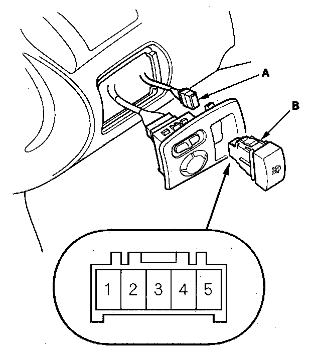 2. Disconnect the 5P connector (A) from the headlight washer switch (B).