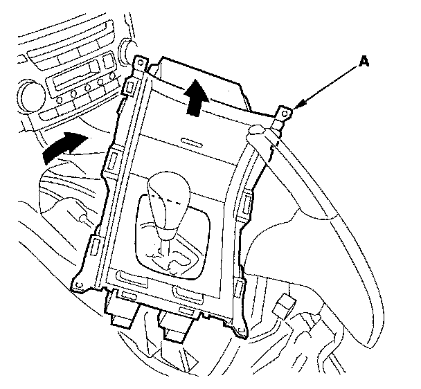 8. Turn the center console panel (A) then lift it up and away from the dashboard.