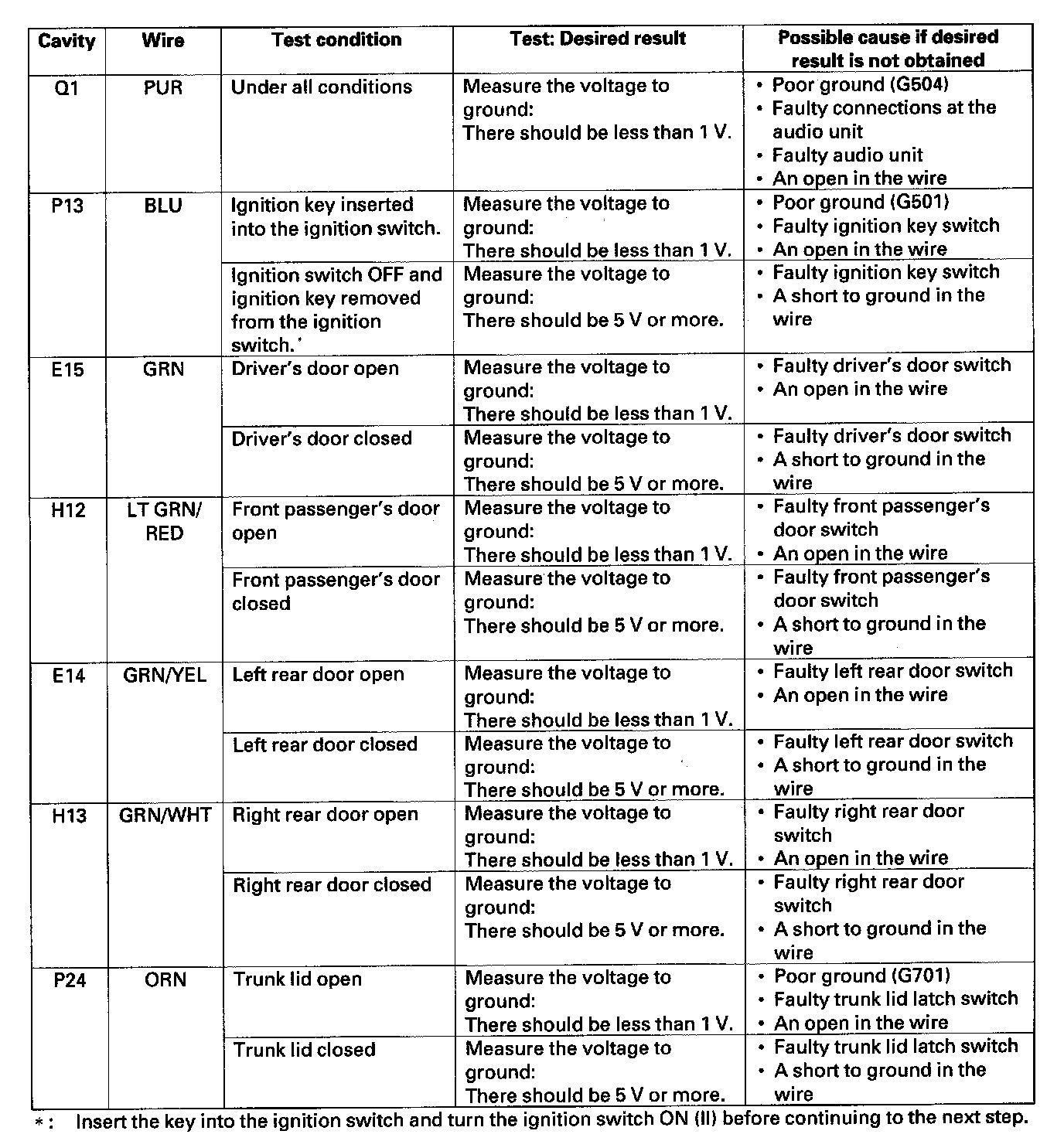 Control Unit Input TestNOTE: Before testing the keyless entry/security control system, troubleshoot the multiplex integrated control system.