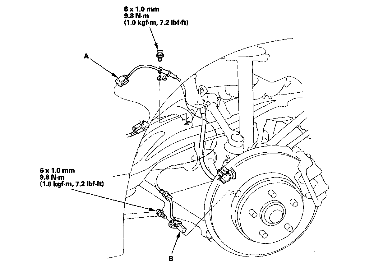 ^ If the wheel sensor comes in contact with the wheel bearing, it is faulty.