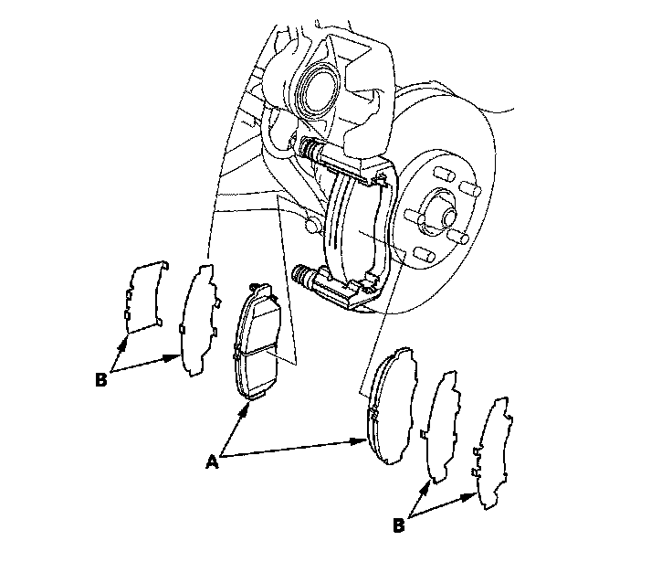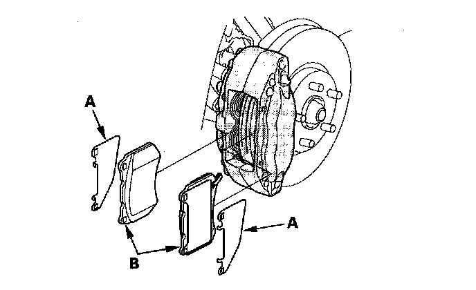 NOTE: Due to the high performance nature of the brake system on the Type-S model (4-piston caliper type). The brake disc and pads may wear faster than on the other models. Be sure to inspect the front brake disc thickness anytime the front pads are replaced.