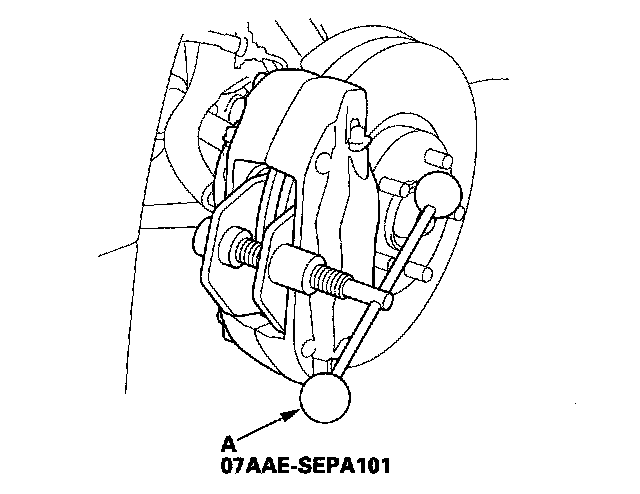 4. Check the thickness (A) of the brake pads. Do not include the thickness of the brake pad backing plate.