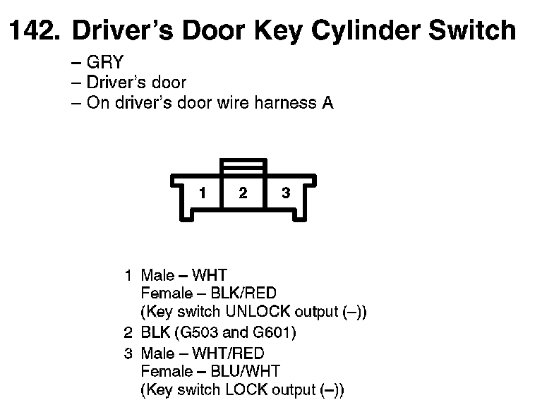 142. Driver's Door Key Cylinder Switch: