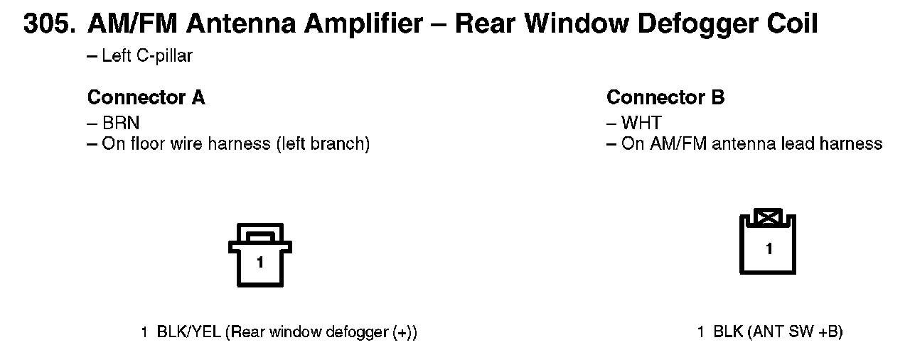 305. AM/FM Antenna Amplifier - Rear Window Defogger Coil: