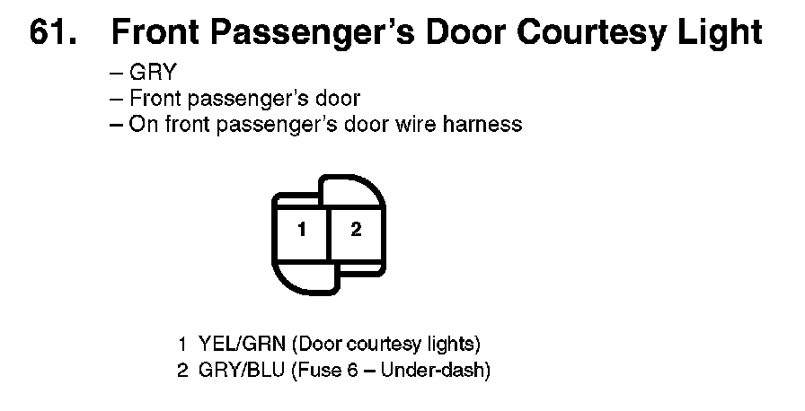 61. Front Passenger's Door Courtesy Light: