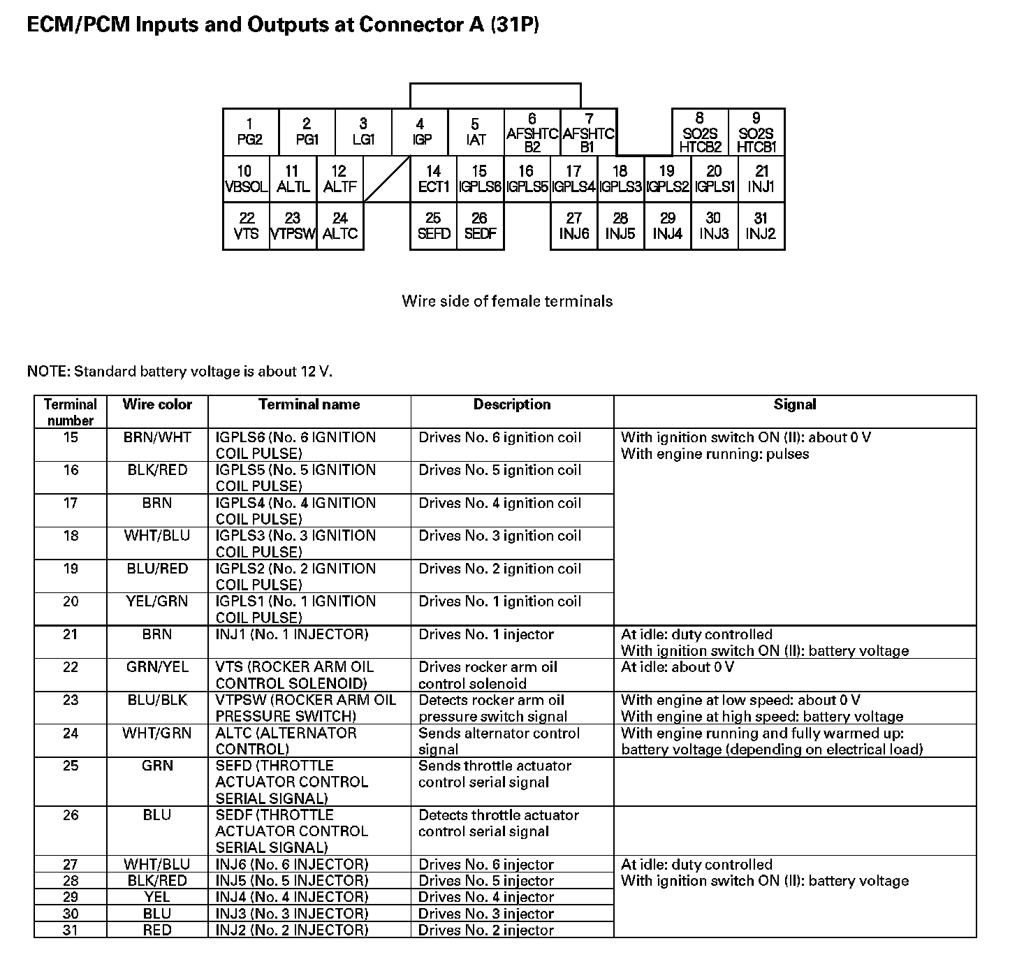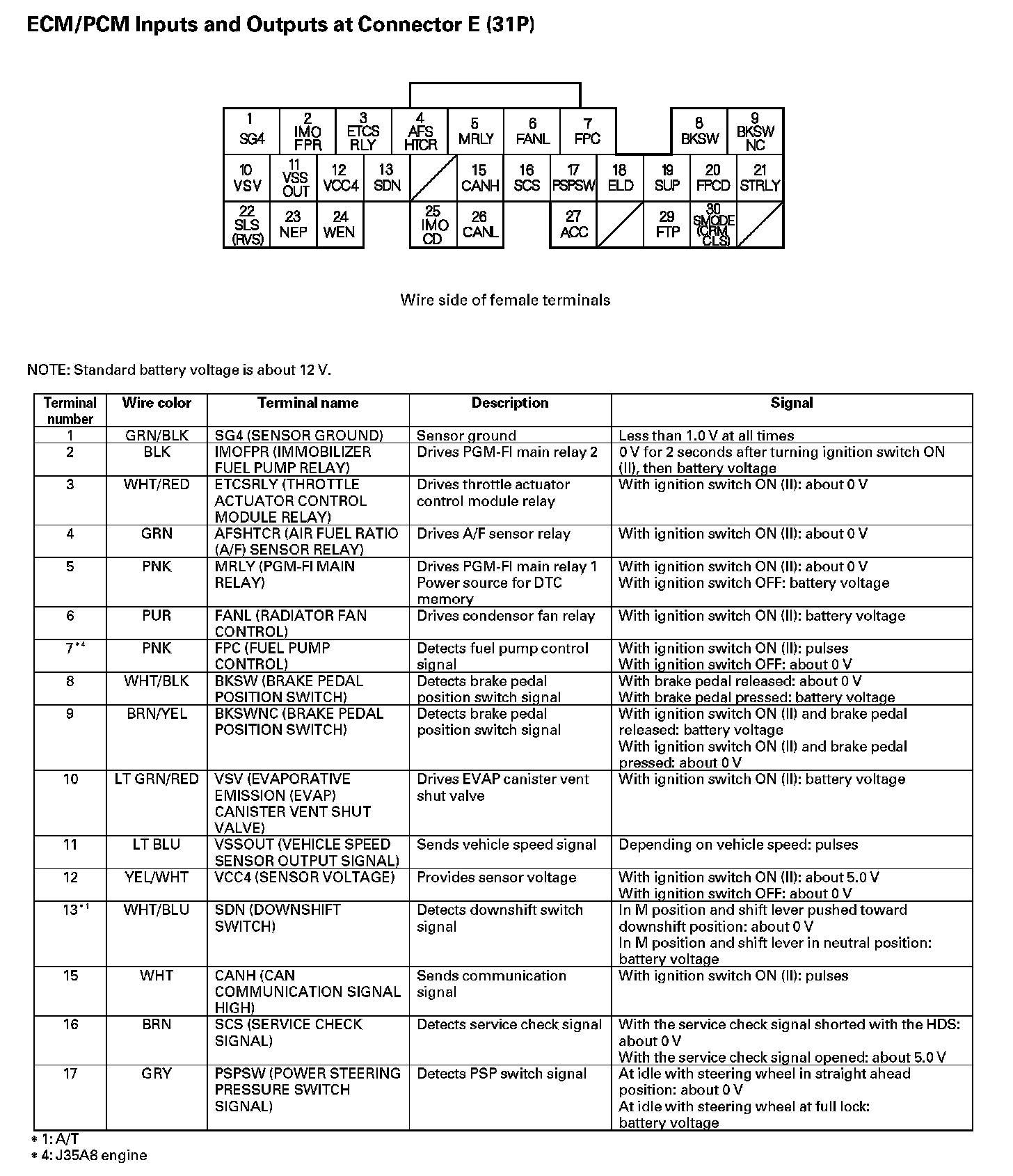 ECM/PCM Inputs And Outputs At Connector A (31P) (Part 1):