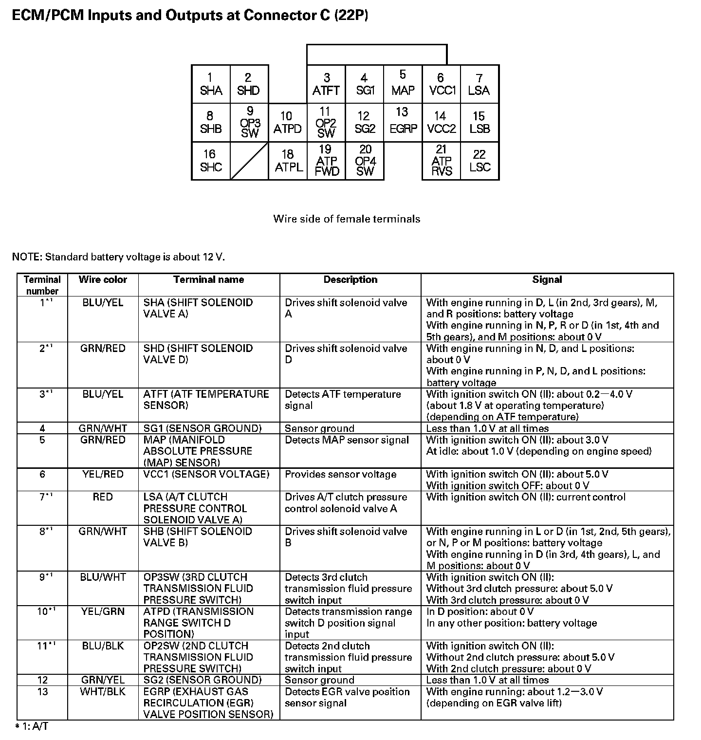 ECM/PCM Inputs And Outputs At Connector C (22P) (Part 1):