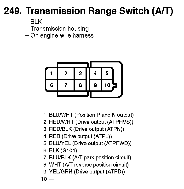 238. Transmission Gear Selection Switch/Park Pin Switch/A/T Gear Position Indicator Panel Light (A/T):