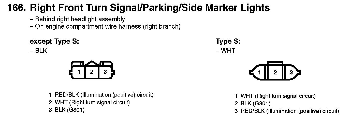 166. Right Front Turn Signal/Parking/Side Marker Lights: