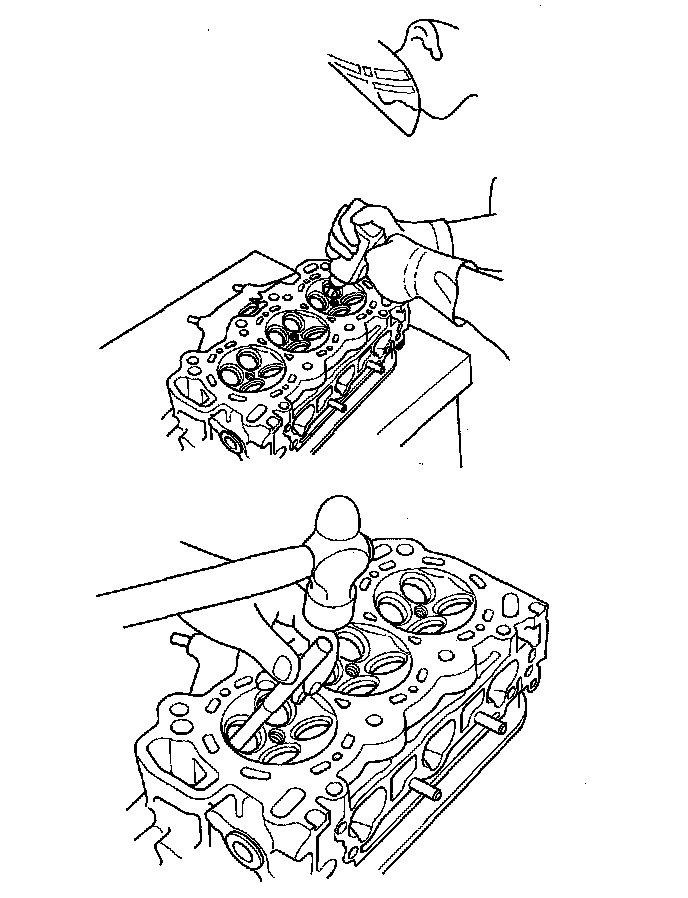 6. Turn the head over, and drive the guide out toward the camshaft side of the head.