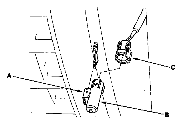 Outside Air Temperature Sensor Replacement1. Lift the tab (A) to release the lock, then remove the outside air temperature sensor (B) from the back of the front bumper beam. Disconnect the 2P connector (C) from the outside air temperature sensor.
