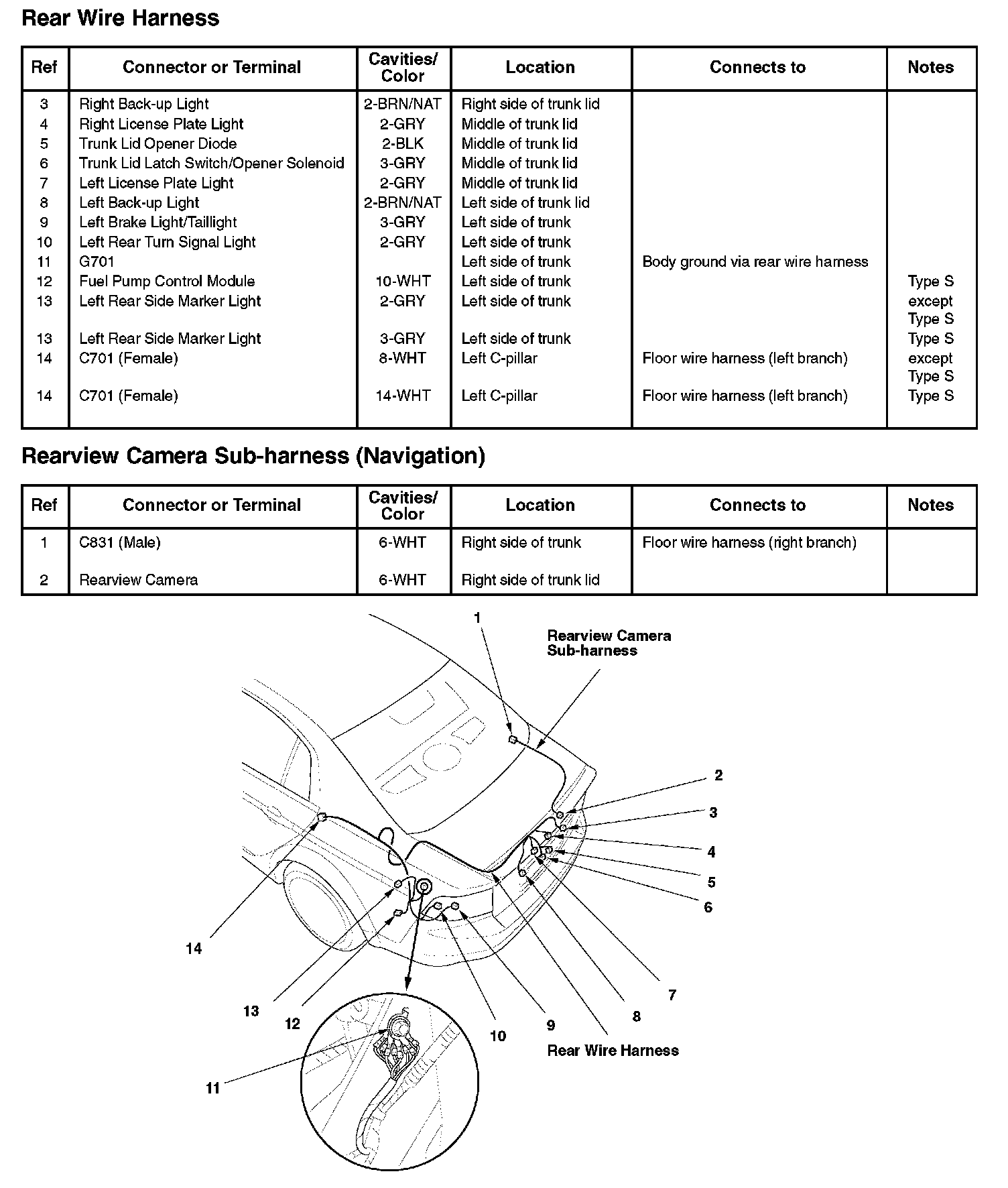Rear Wire Harness/Rearview Camera Sub-harness (Navigation):