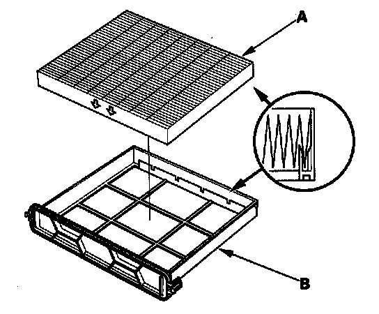 3. Remove the filter (A) from the housing (B), and replace the filter.