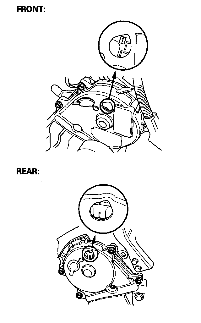 3. Set the camshaft pulleys to TDC by aligning the TDC marks (A) on the camshaft pulleys with the pointers (B) on the back covers.
