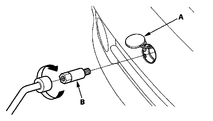 3. Using the wheel wrench, fasten the extension (B) into the bolt hole in the bumper.