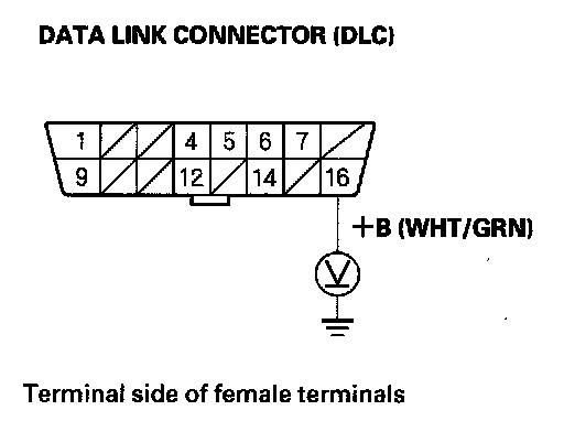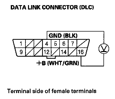 23. Measure voltage between DLC terminal No. 16 and body ground.