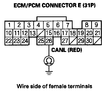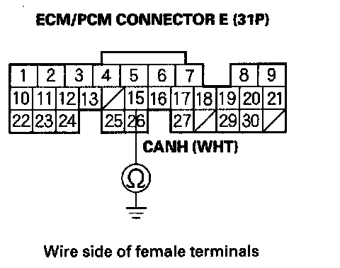 30. Check for continuity between ECM/PCM connector terminal E15 and body ground.
