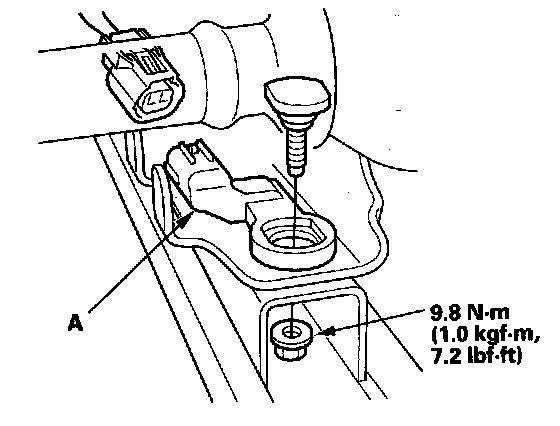 1. Install the new driver's seat position sensor, then connect the driver's seat position sensor harness 2P connector to the driver's seat position sensor (A).