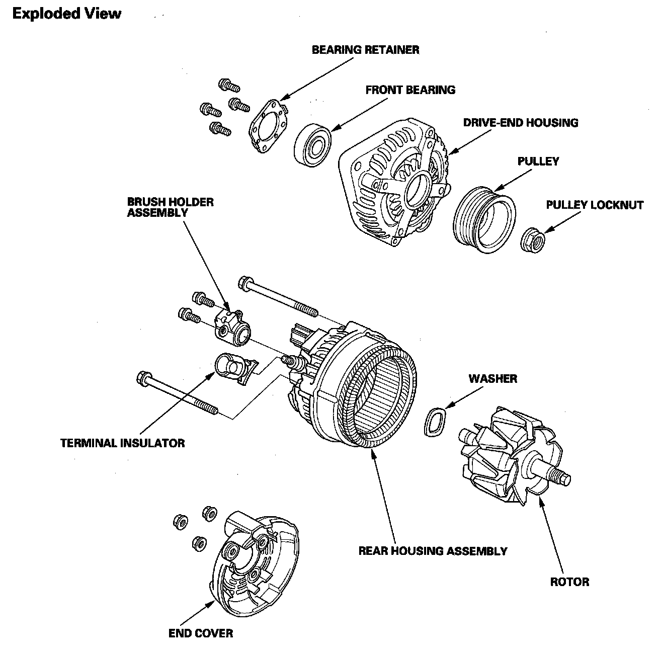 22. After assembling the alternator, turn the pulley by hand to make sure the rotor turns smoothly and without noise.