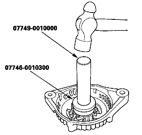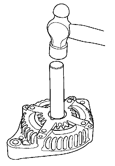12. Install a new front bearing in the drive end housing with a hammer, the handle driver, and attachment.
