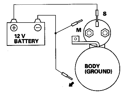 4. Disconnect the battery from the M terminal. If the pinion does not retract, the hold-in coil of the solenoid is working properly.