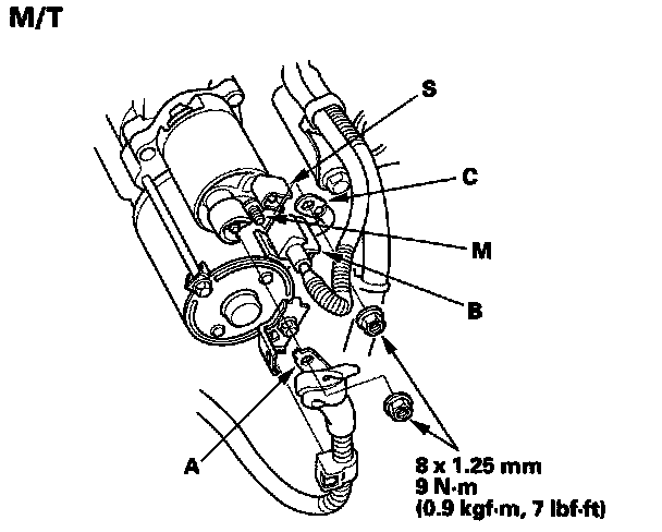 6. Check the pull-in coil for continuity between the S terminal and the M terminal. There should be continuity.