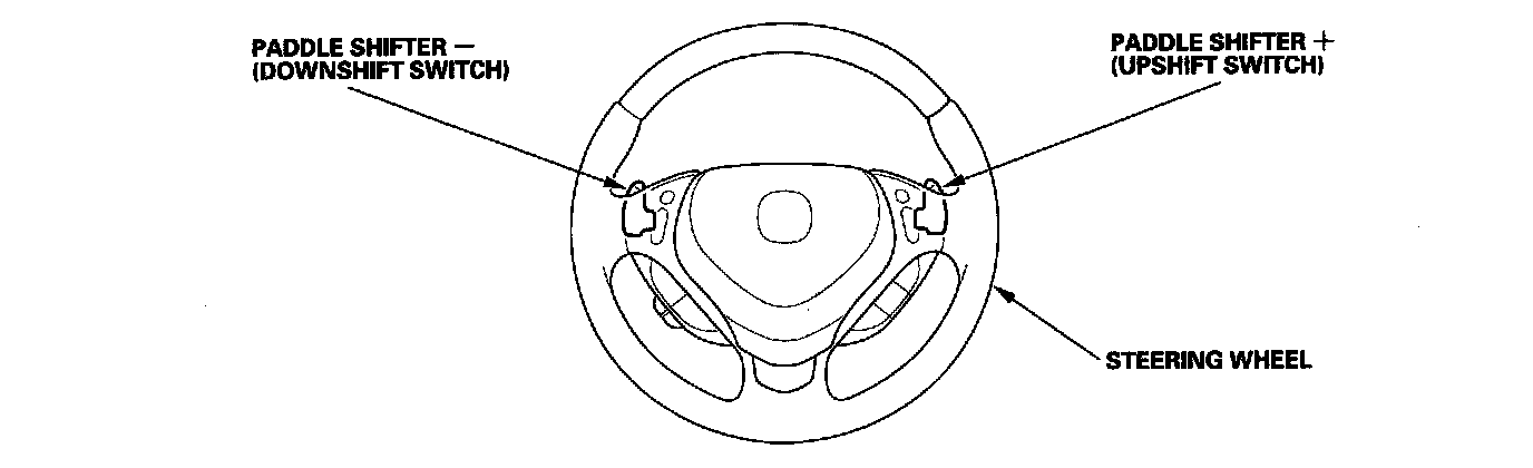 The sequential shift upshift switch and the downshift switch are in the shift lever, and the paddle shifter + (upshift switch) and the paddle shifter - (downshift switch) are installed on the back of the steering wheel. The driver can shift gears by moving the shift lever by hand, or by pressing the paddle shifter +/- (upshift/downshift switch) (J35A8 engine) without taking either hand off the steering wheel.