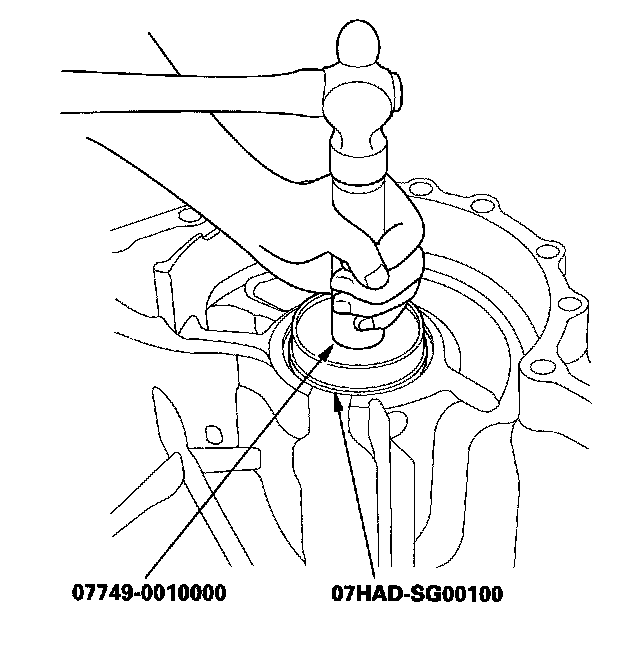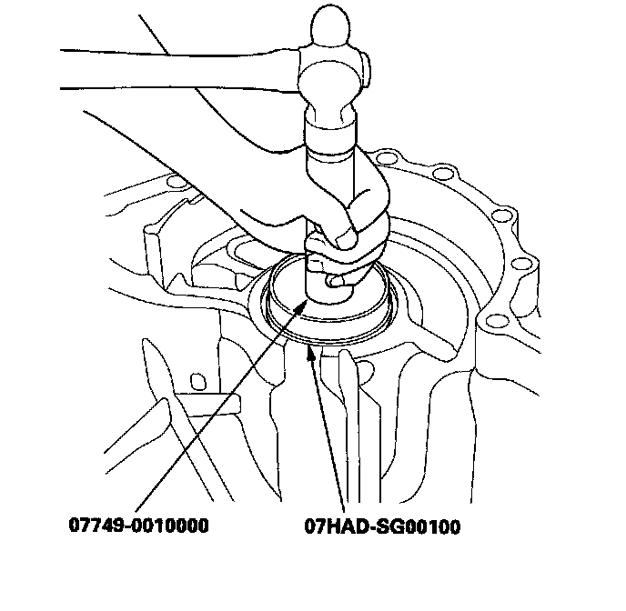 3. Install a new oil seal flush to the transmission housing using the driver and the oil seal driver attachment.