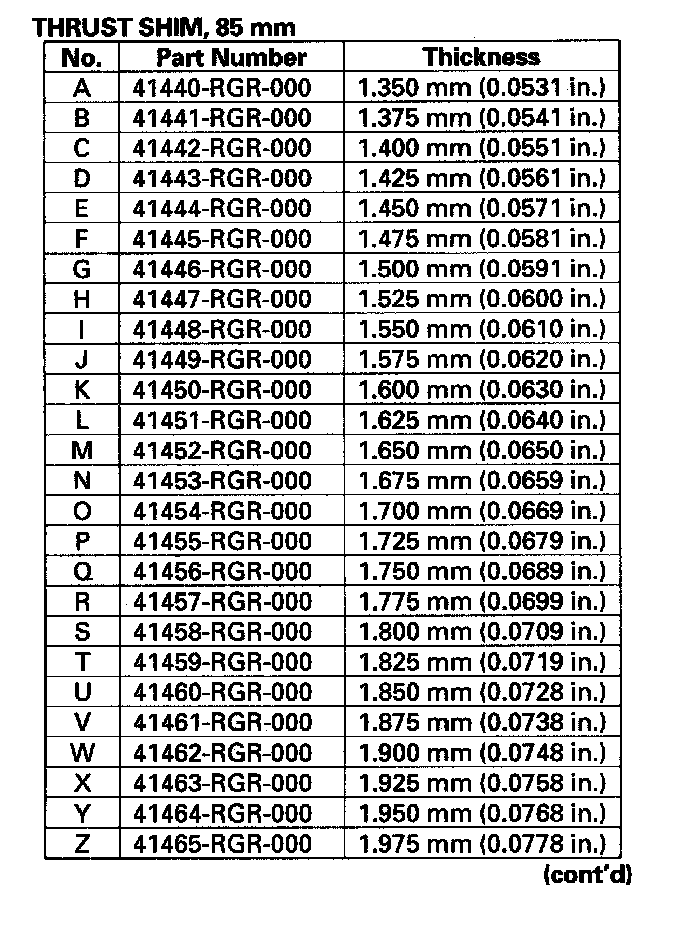 ^ Adjust the preload after replacing the bearing and the outer race.