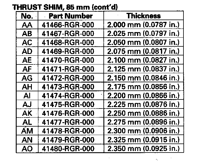 10. Select a new thrust shim. To increase the starting torque, increase thickness of the thrust shim. To decrease the starting torque, decrease the thickness of the thrust shim.Changing the shim to the next size will increase or decrease the starting torque about 0.5 - 0.6 N-m (5 - 6 kgf-cm, 5 - 5 lbf-in.).